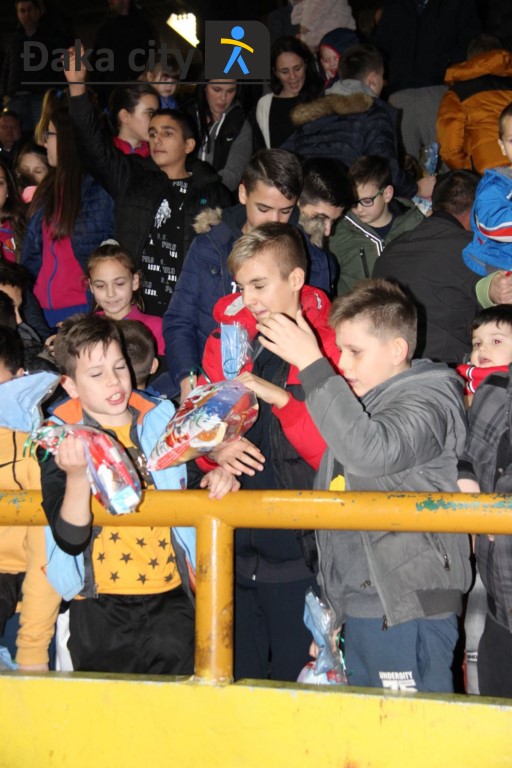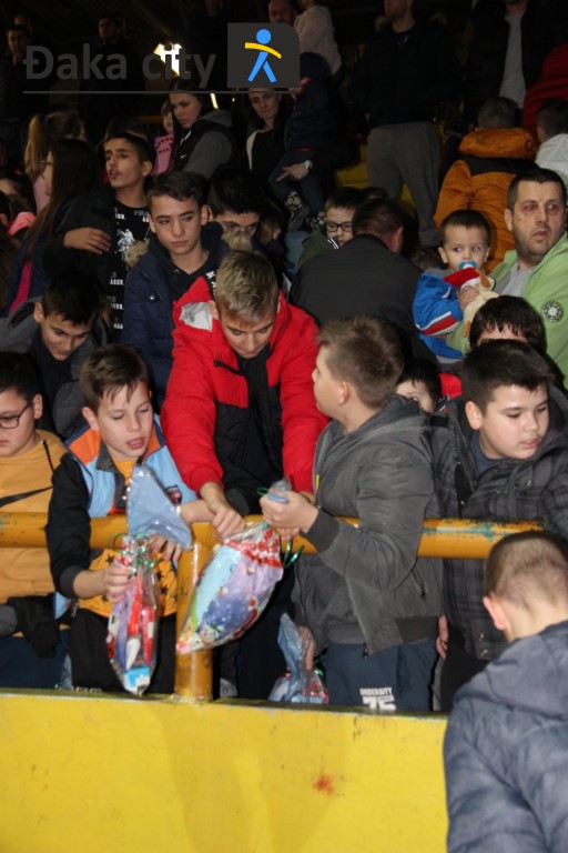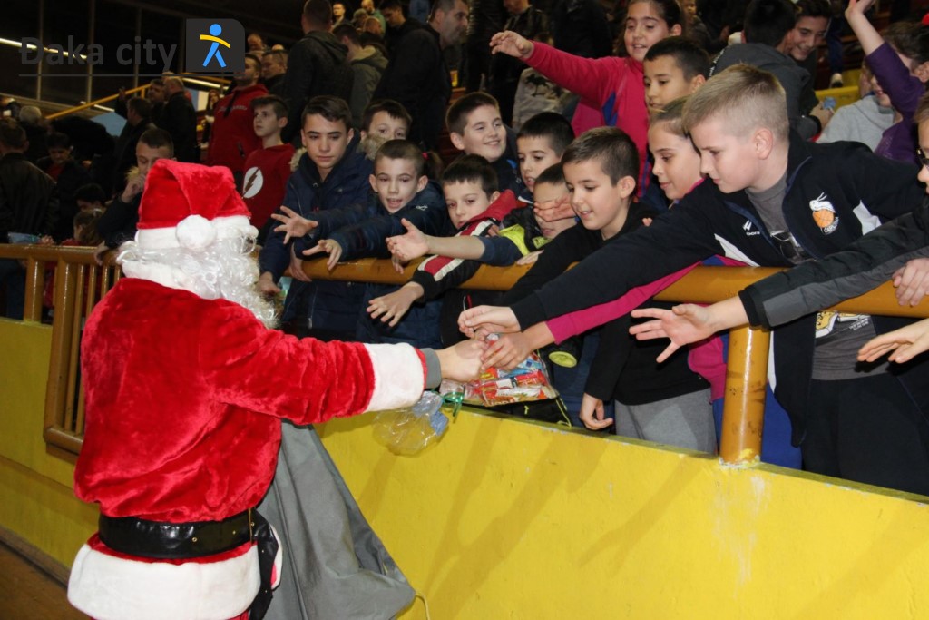 Nakon darivanja igračaka za Dječji vrtić Čapljina danas, u poluvremenu susreta između domaćih košarkaša Čapljine i košarkaša Zrinjskog iz Mostara upriličeno je darivanje mališana od strane Djeda Božićnjaka.